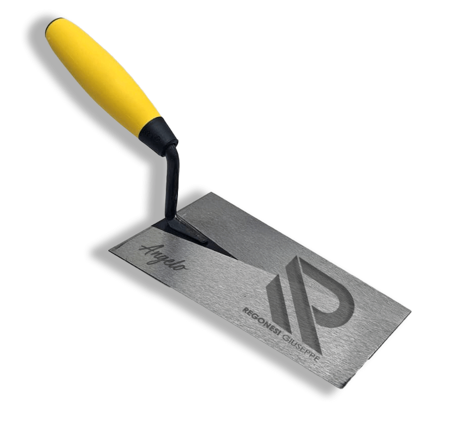 Realizzata con una personalizzazione completa (NOME AZIENDA + NOME DELL’UTILIZZATORE). Grazie all’incisione LASER, questa cazzuola è destinata a durare nel tempo!
